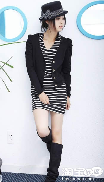 *杭派小西装外套+条纹连衣裙*:经典英伦风