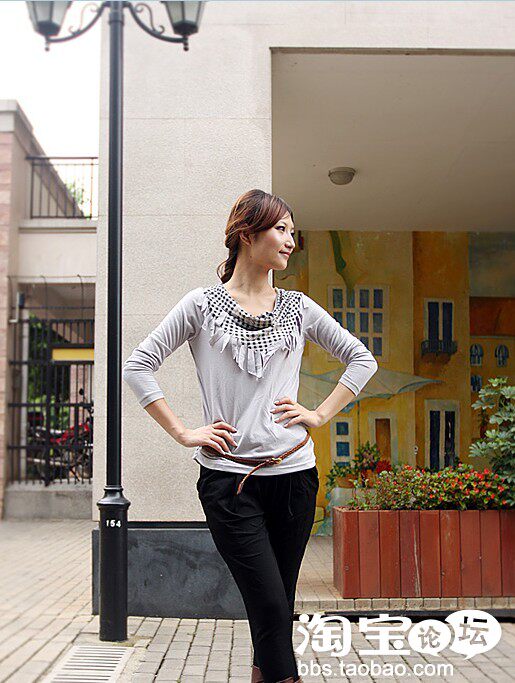 2、千鸟格流苏围巾领长袖T恤,随意搭上一条编织小腰带,轻松扮靓......