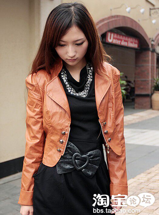 4、短款皮衣也可以穿得这么有女人味~~~~呵呵