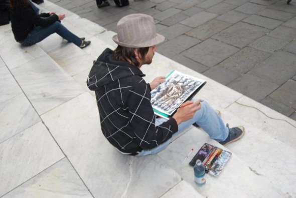 蹲在地上作画的艺术家,后面那幅是我们4个小时后来拍到的 ,