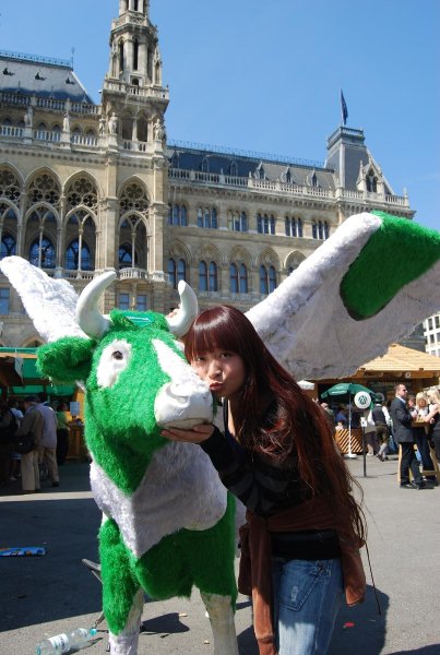 这是在捷克,布拉格广场上,小胖子一个,还是宫女头。。