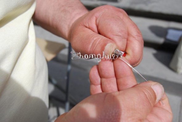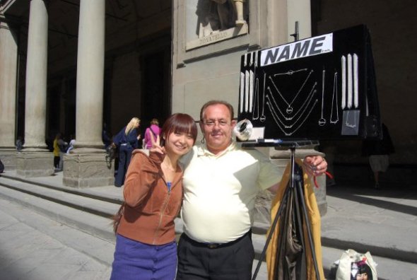 以我的名字拼音做的项链,据说是银的,8欧元。给我便宜了2欧。2欧对我来说可不少哦