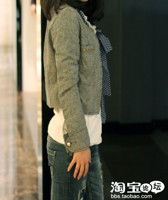 搭配提示:不同颜色的围巾、搭配素雅经典的包包,蝴蝶结包包会搭配出复古典雅的气质。短款小外套贴身的小内搭,会显得腰细哦!~打底小T适合搭配淑简洁女款式的哦!