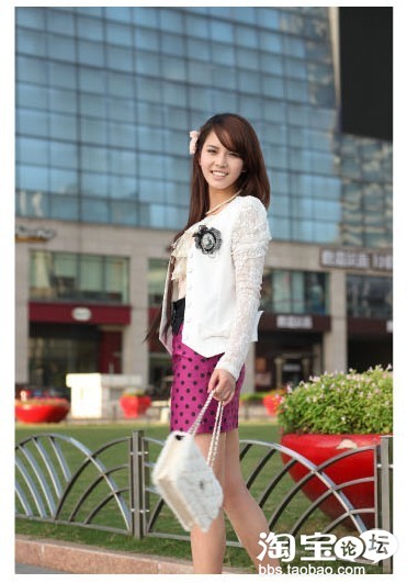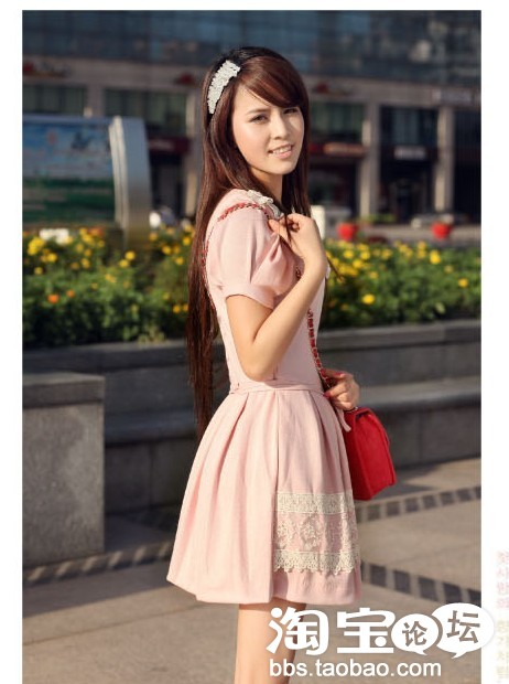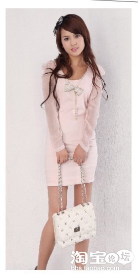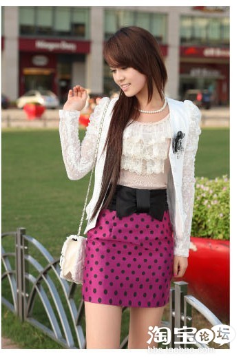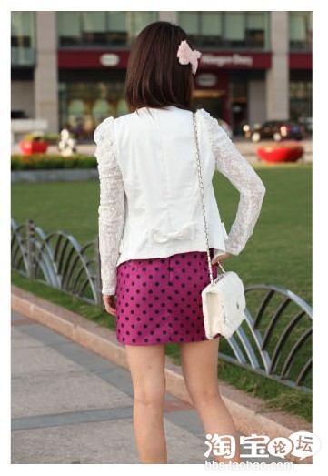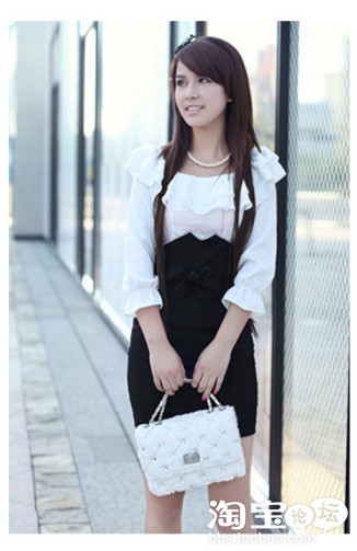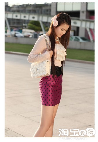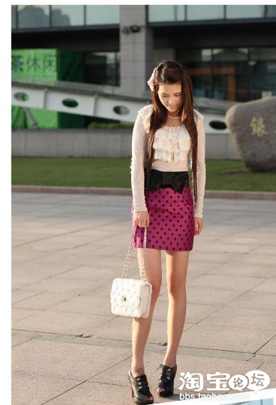 颜色是玫红加黑点,加以大蝴蝶结的搭饰,活泼而不呆板