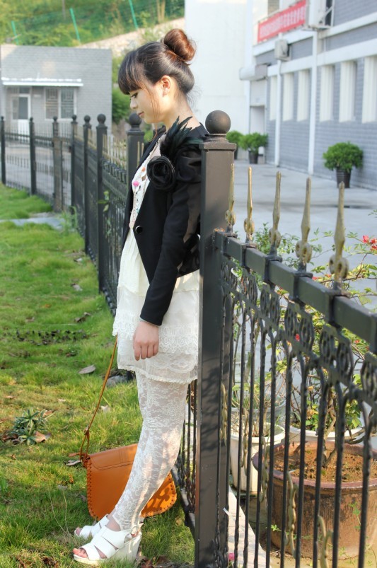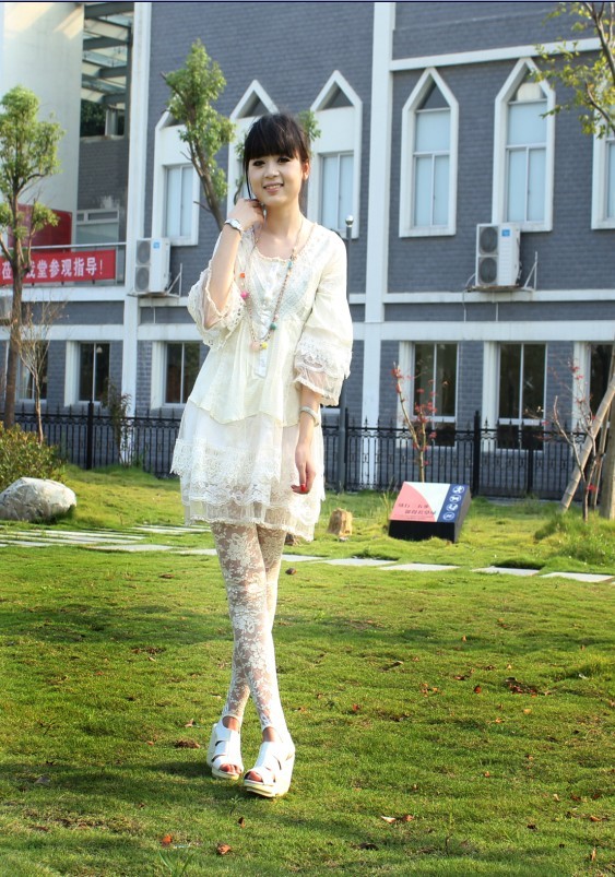 最流行的搭配就是带蕾丝的白色小雪纺,