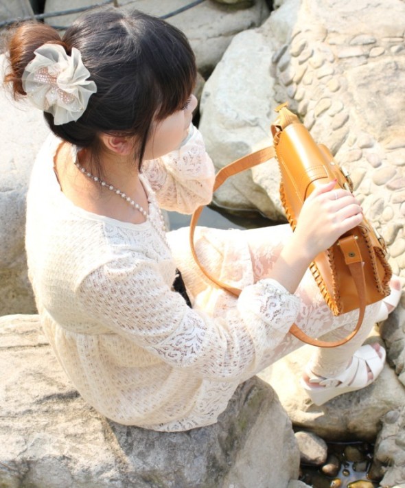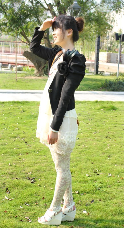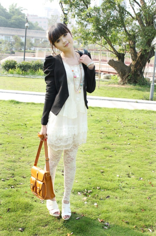 秋日的日系搭配中有着比夏日更浪漫无边的表情,尤其是纯色的蕾丝裙。