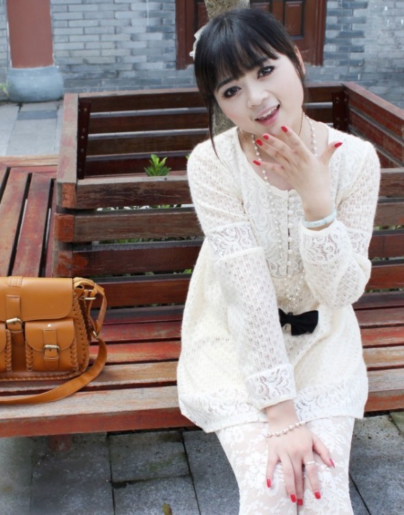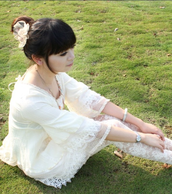 大的喇叭袖,更显手臂纤长,镂空蕾丝花边的修饰更添唯美感,恬静、雅致,有不过分的甜美,举止中都路露出花瓣悄然绽放的韵味!