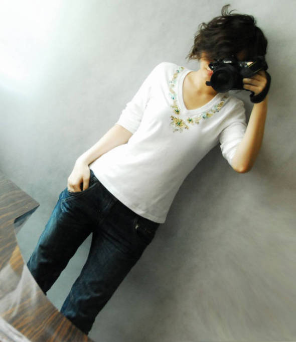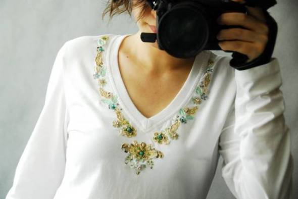 领口的钉珠让衣服的重点上移