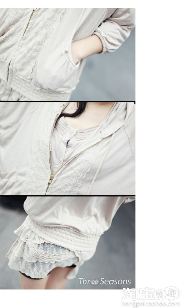 此款YY将花边大量用在衣领、衣褶和下摆的设计中,今秋甜美气息围绕着你。