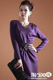 设计感十足的长袖连衣裙。修身效果非常好,搭配腰间的特殊褶皱钉珠,拉出漂亮的垂坠线条,非常抢眼特别。特别的面料手感非常好,紫色,给人一种独特的尊贵感。高腰设计显得身材比例更加完美,显高又显瘦.