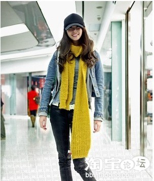 这款是另类的围巾搭配法。。与手上的小包包都很有潮流感觉奥。。(这款围巾呢???不要大声说话,,,其实这款围巾是。。。。。。嘘。。保密。。哈哈)