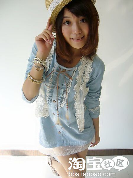 浅色牛仔原单,可爱的蕾丝装饰将甜美感释放到极致,