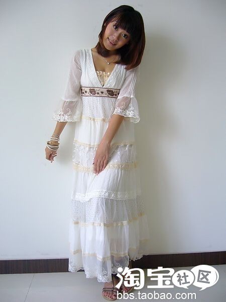 (一)超长白色及踝裙连衣裙&展现舒适可爱