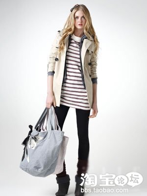 散发巴黎式的早熟韵味。校园风衣搭配日渐走红的条纹衫、全新贴身剪裁的打底裤彰显妩媚柔和。