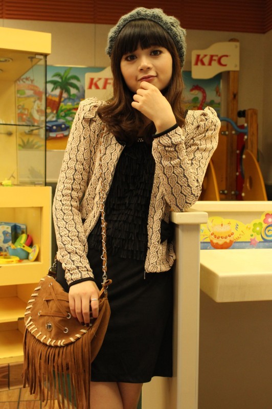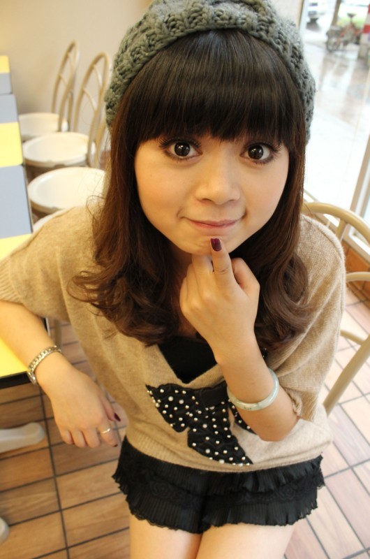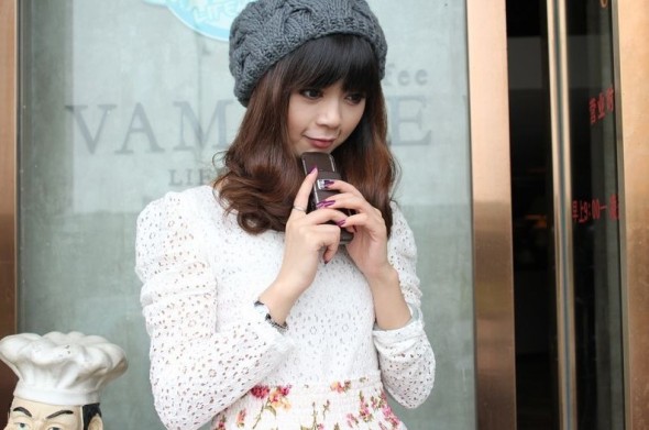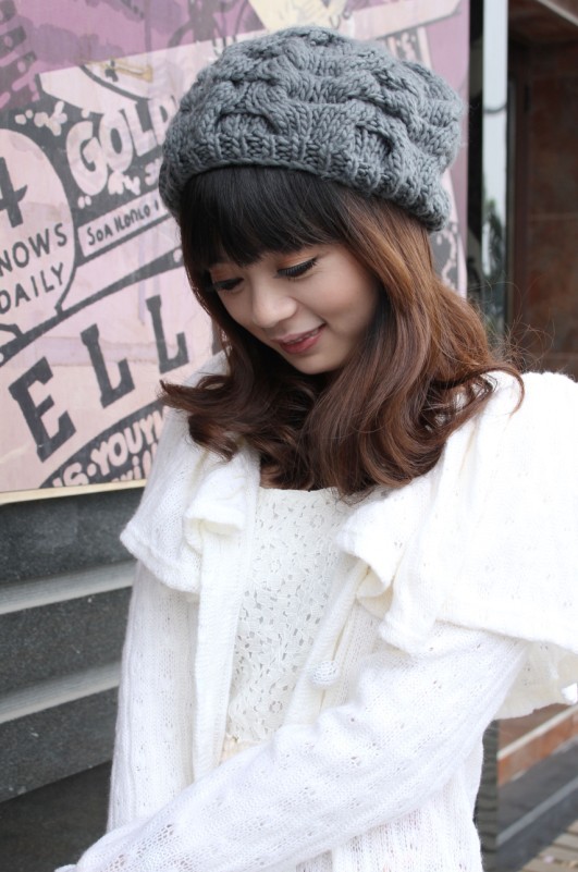 搭配毛线的帽子 很有韩国MM的范儿 哦~
