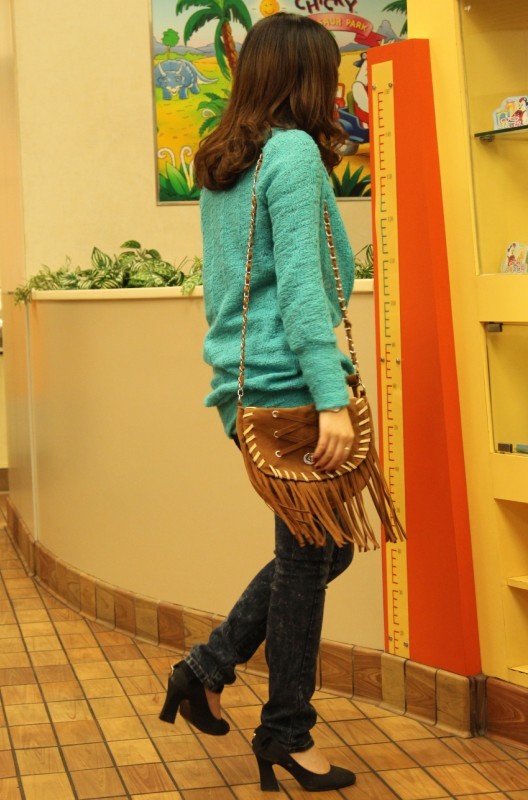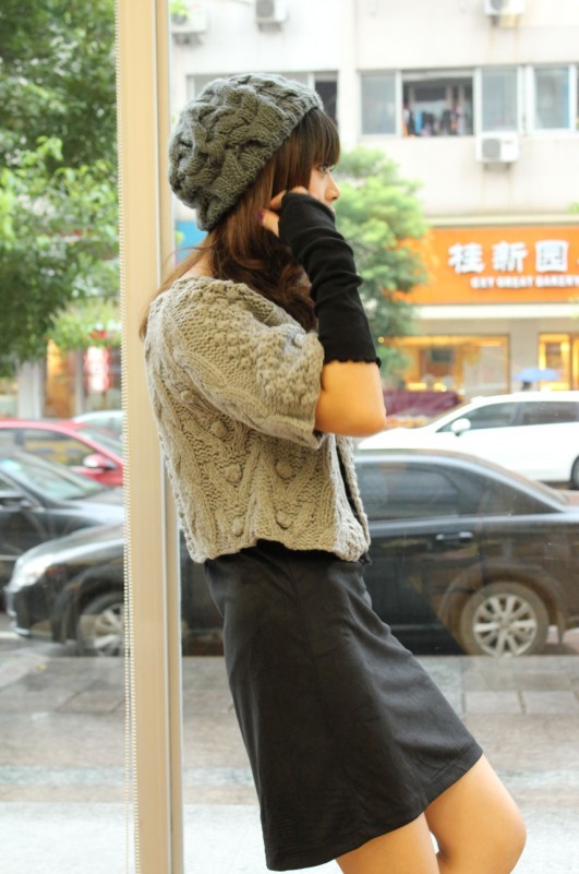 蓝绿色针织外套,纠结的颜色,很独特哦