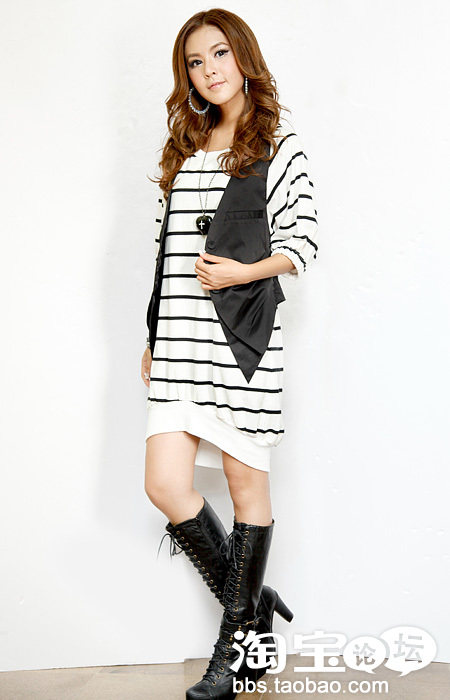 你看这款搭个打底裤穿啊,很显瘦的