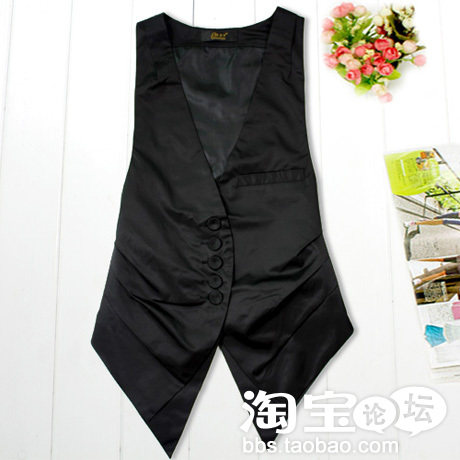 马甲衣身开门襟由一排纽扣维系 这款胖MM约会必备哦,帅气,又不失气质哦,今天就发到这里啊。待续
