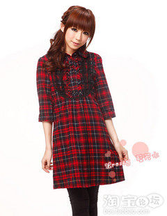 舒适大方的学院风的格子配上精致的蕾丝花边围拢在领子的两边显的特别的精神有气质