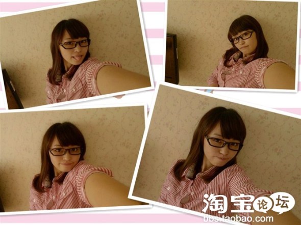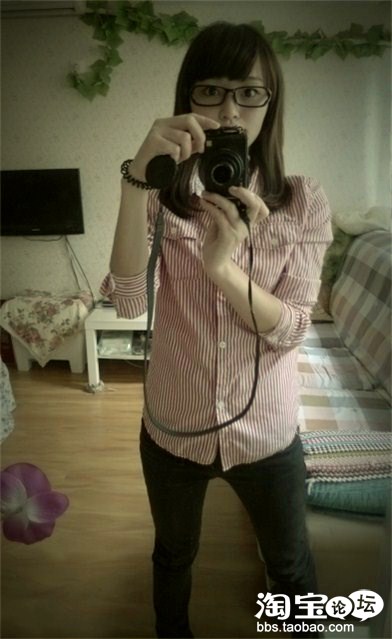 呼呼 刚在淘宝上败的 红色条纹衬衫和黑框眼镜 ..