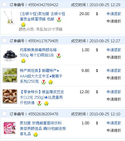 我的大部份东东都是参加秒杀呀,促销呀,团购呀