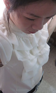 木耳边的雪纺衬衫,就是大了一点点,其他都很好,穿上很淑女哦!