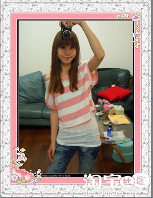 第一套:先露半张脸,神秘一点,嘿嘿。这件黑白配是我的至爱,很显身材,雪纺的质量也很好,平时我晚上出门散步的时候单穿,(为了保持身材,姐姐每天晚上外出散步一小时,我容易么,有没有和我一样的姐妹啊?)不穿下面的裤子的,露出我的又细又直的小腿,自己美得不得了(楼主是自恋狂,大家无视我就行)。但是,考虑这一次见面的是个理工男,别吓着他,加条裤子好了。