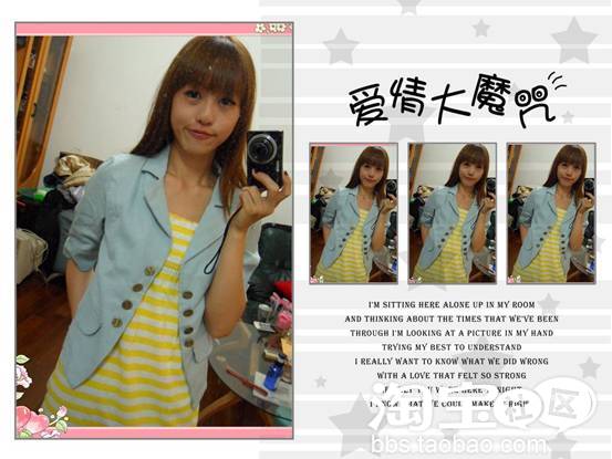 好了,姐姐很严肃的向大家讨个主意:我到底穿哪套衣服去相亲呢?据说要见得是个帅哥啊,事态严重啊,大家都重视点哈,我先喝点水去,打字打得手腕都要断了。