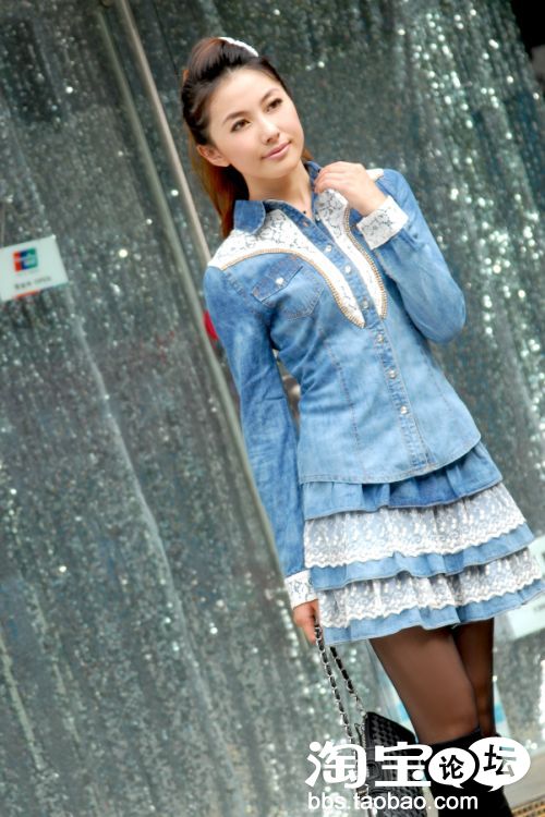 这款牛仔衬衫与短裙的搭配,恰到好处的展现出MM的诱人身材,这种穿既显大方,又不缺时尚,有别样的美