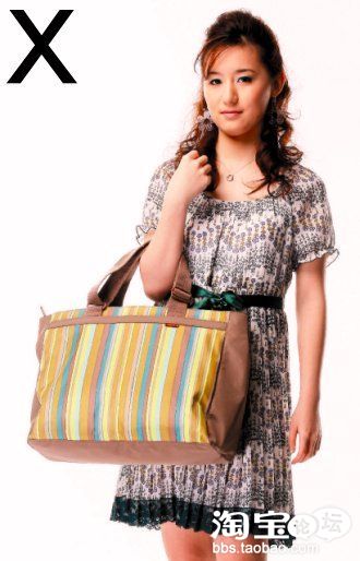 ╳ 托特包的把手短,多半仅能手提,有些美眉图方便,直接挂在肩膀上,整个袖子卡住,美感减分喔。