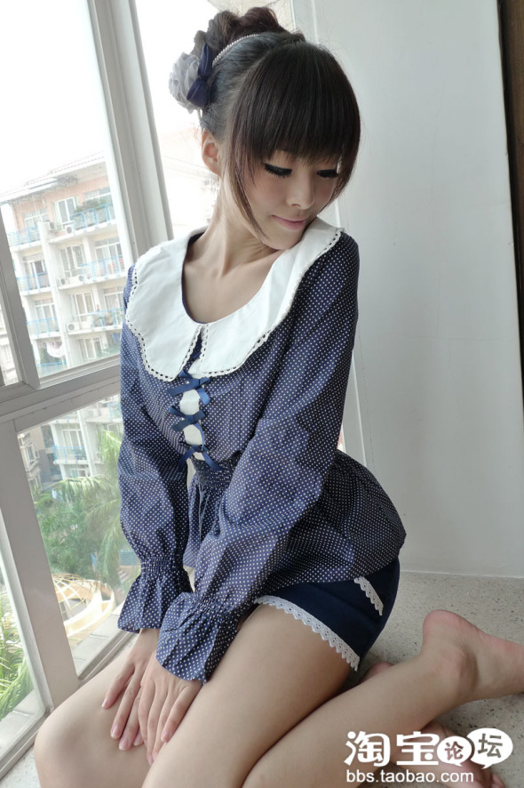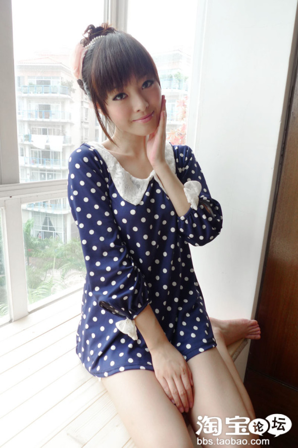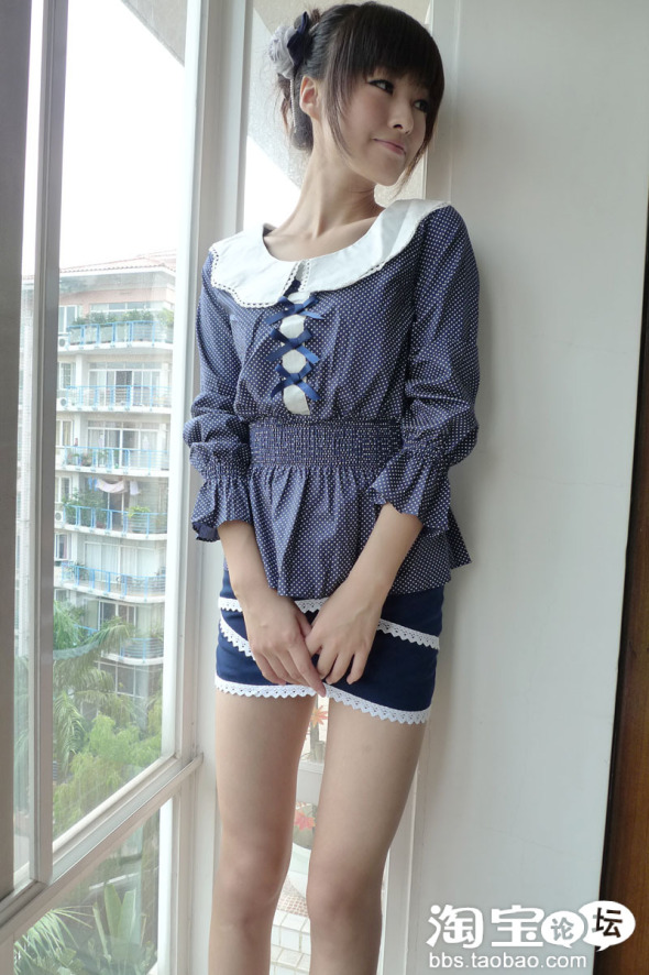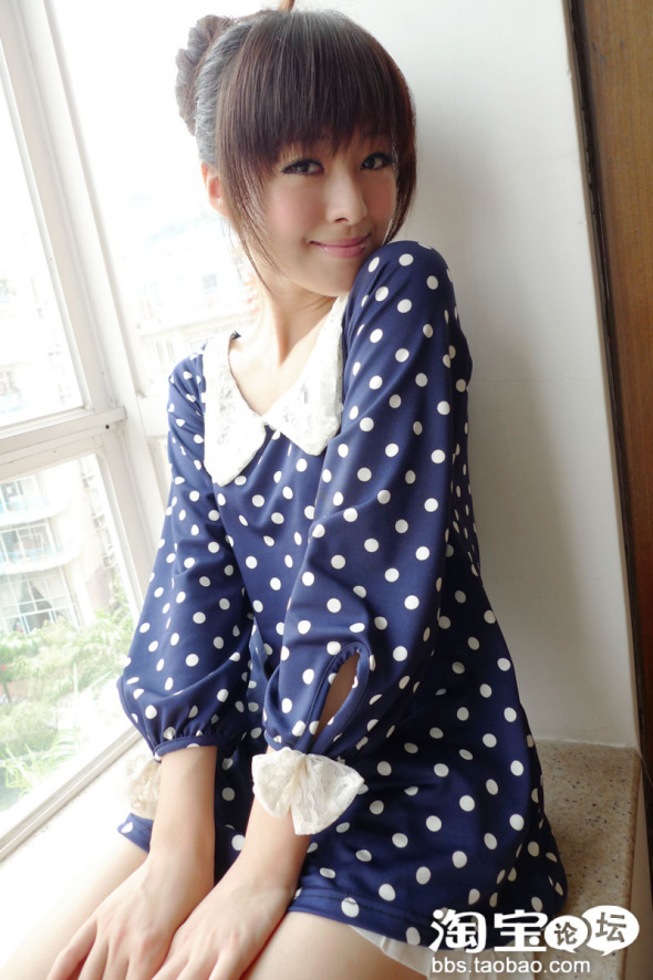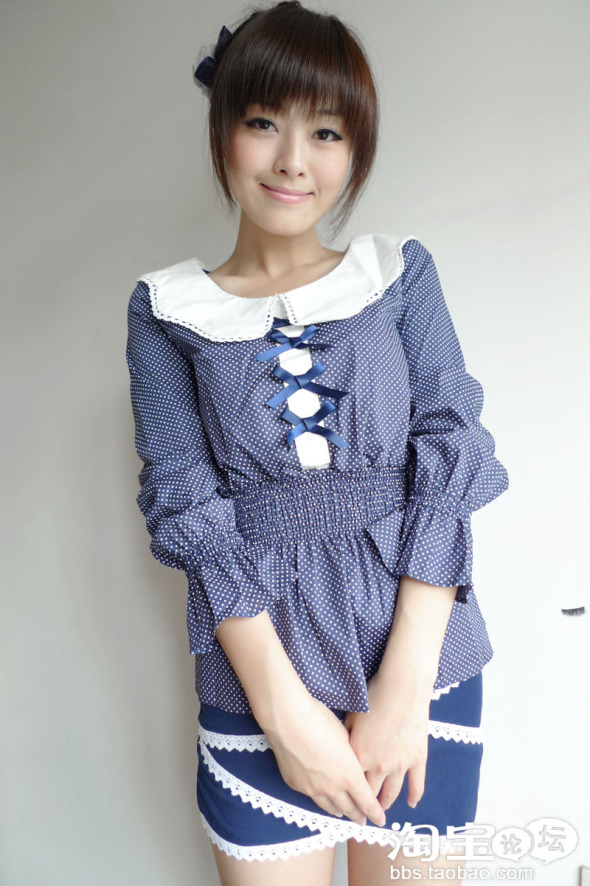 圆点的蓝色娃娃衫 很可爱的感觉