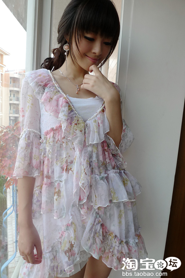 袖口 和衣身都华丽丽的~ 给人的感觉很甜美哈~