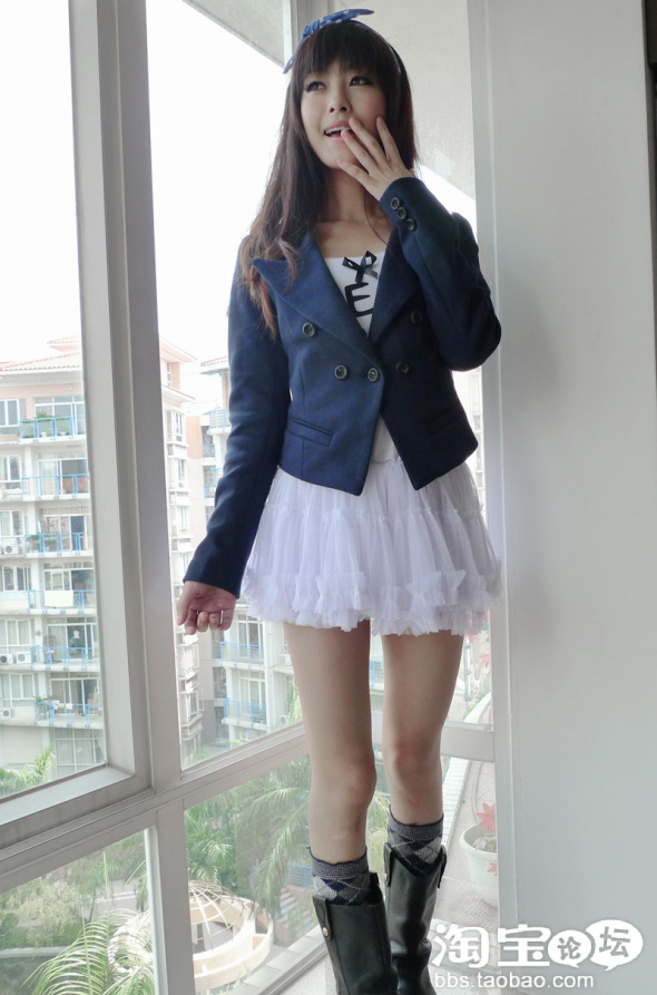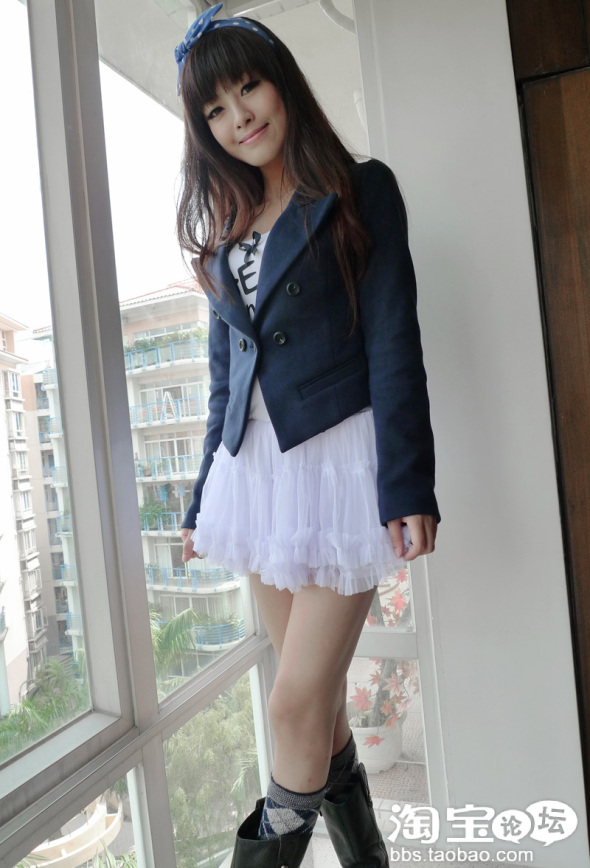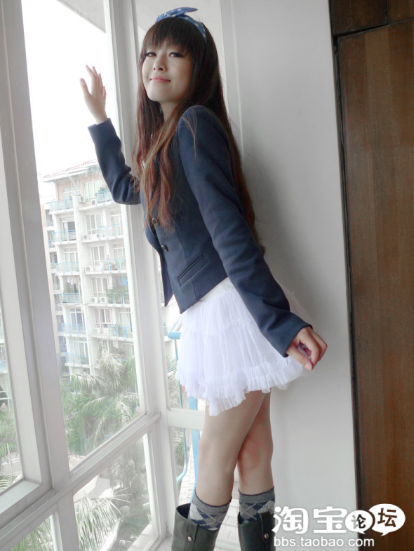 一直钟爱的风格 搭配了白色蓬蓬裙 和蓝色格子的棉袜