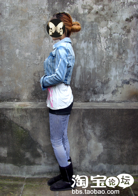 再搭配一个破洞牛仔褂~ 忽忽 ~~