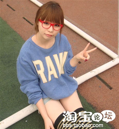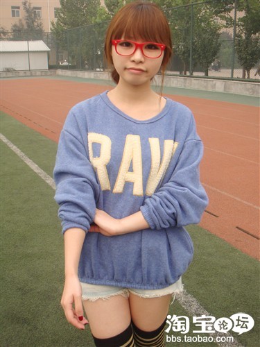 首先~这个抓绒蓝卫衣很韩~搭配短裤 运动袜 非常NICE