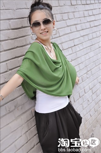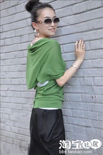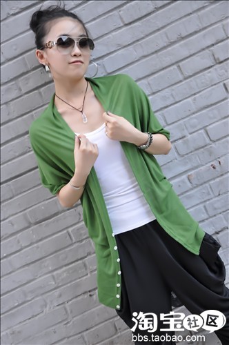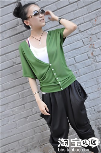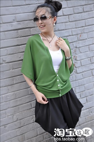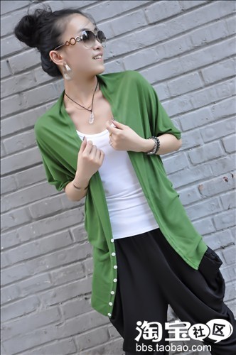 嘿...一下又变成的短款蝙蝠衫,而且型很好噢!