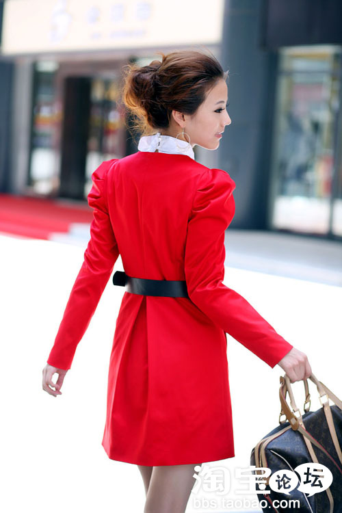 第一眼你可能就会感觉很清爽,亮丽线条明朗,如果你再仔细看就会发现很多元素都是初春时流行的,双排扣、泡泡袖、而这里的双排扣已经换成了金属色的,突显风格,让你在千千色色中与众不同。些款风衣的领子可以合可翻噢,仔细的MM一定早就看出来了,感觉不错吧,如果冬天再加款亮色的围巾,那就说不定有多少的回头率了!
