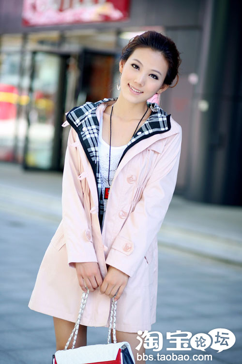粉红色系的风衣一亮相,就给人清纯自信的感觉,这是一款非常跟进现代潮流的新颖风衣。细心的美眉可以发现,这款风衣的肩胛与胸口两侧有着今年较为流行的“泡泡”的设计,同时简单却又不失大方的翻领以及细显身材的素腰带,给人带来的感觉不仅仅是一种潮流,更是一种青春、靓丽而又稳重的全新感观。