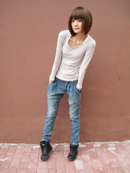 休闲的街头风装扮,又很学院派的感觉。最近貌似走起了嫩路线