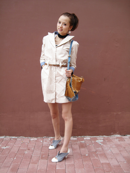TOP,3 利索马尾+韩版修身中袖风衣+高跟鞋