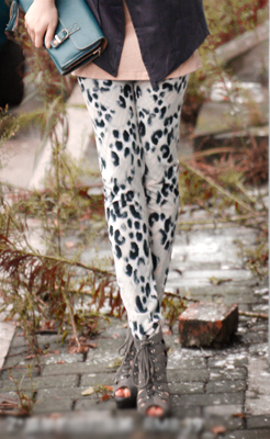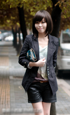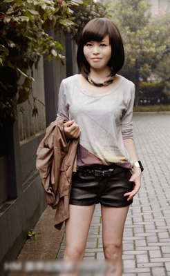 T恤和短裤永远是年轻的标志哦~今年很流行皮裤~果然穿起来质感很不一样哦
