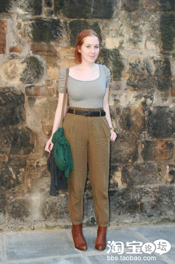 袖口的褶皱修饰了手型,西裤是复古风格的好搭档,这样的一身当以复古色彩的棕色短靴来陪衬最好!