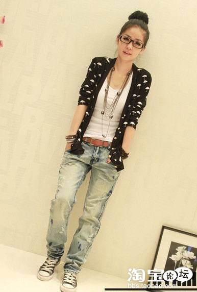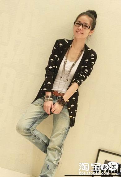 这种类似豹纹的小开衫穿出了青春女孩们的另一种时尚风格,是一种狂野性感的风格的体现