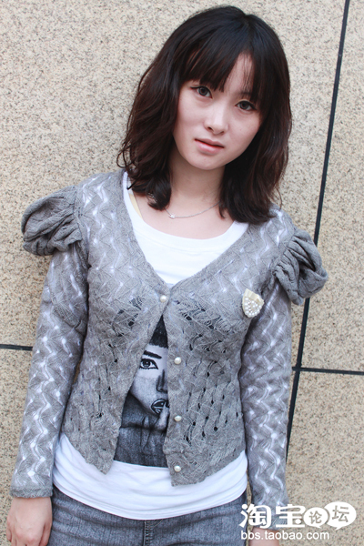 3.灰色针织外搭+白色tee+灰色牛仔裤