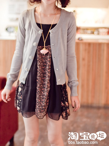有种小猫猫的感觉,黑色雪纺华丽丽的,灰色开衫很温顺。