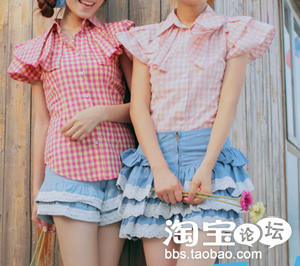 双层荷叶袖,小格子条纹,粉嫩亮丽的色彩。