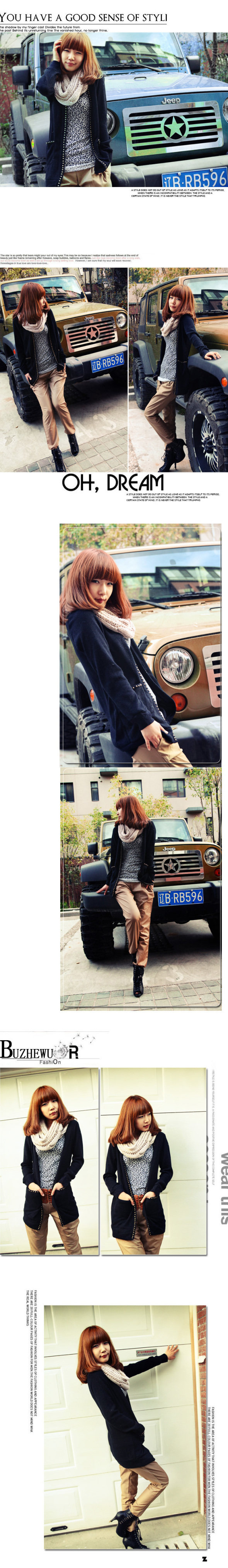 建议:如果你衣橱里没有一件开衫那就真的out了,一件针织衫,可是春秋换季的必备,搭配上你的夏装,实用和时尚一举两得。添加了圆柳丁的时尚元素,使整个层次上升了一个阶段…无论是搭配衬衫哈伦裤还是连衣裙短裙都可以在秋季发光哦!质量手感都超棒的,保暖同时,是另一种独特的迷人气质在弥散~~
