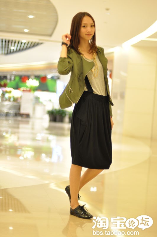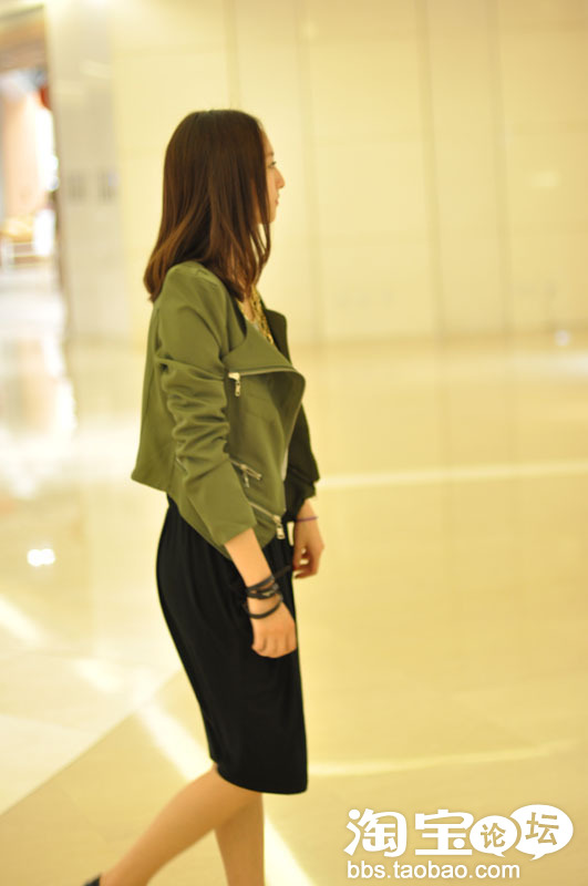 这个墨绿色的外套就是搭配了上面那件很港的裙子哈哈
