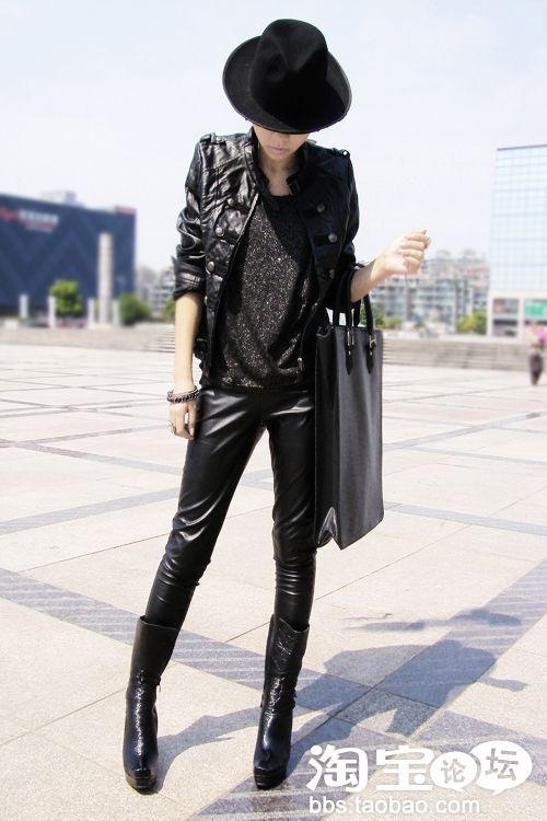 皮衣是衣橱里面永远都不能少的一件单品 很爱啊 一件好的皮衣必须要有一件 看惯了欧美街拍一身黑色皮衣装扮