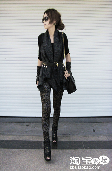 黑灰色 来一点野性的豹纹也是很有味道的 豹纹和黑色的配在一起是很搭的 整个人的气势都有了